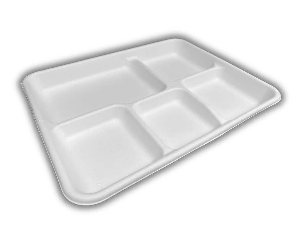 5-Compartment Sugarcane Plate / Thali (125 Packs)